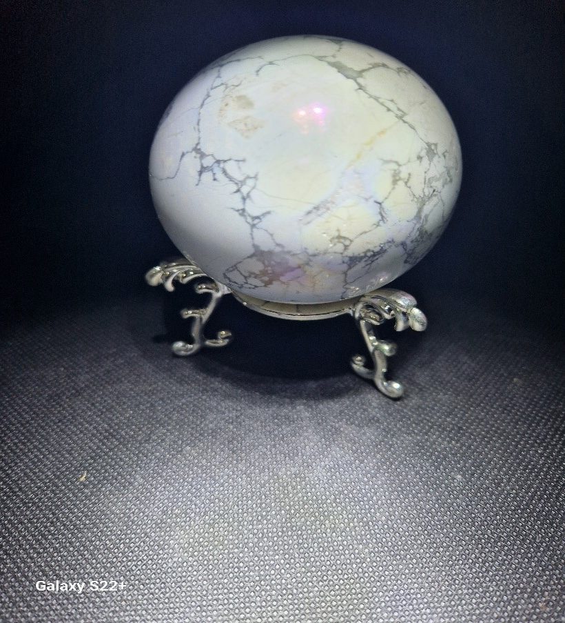 ENERGIJA: Howlit leti z mehkimi krili na mirnem vetriču. Pomislite na ta marmorirani kamen kot na ramo, na kateri lahko počivate. Howlite izpopolnjuje element sposobnosti zraka, da se premika in pretaka, prinaša potrpežljivost, osredotočenost in jasen vid v vaš prostor za glavo. Ta učinek izhaja iz odprtja kronske čakre, da sprosti strašljive, ponavljajoče se in tesnobne misli. Howlite naredi prostor v vaših mislih za boljše vizije, kot so cilji, ambiciozna prepričanja in ohranjanje naučenih informacij. Z mehčanjem vašega intelekta lahko bolje spite in naredite bolj namerna dejanja.